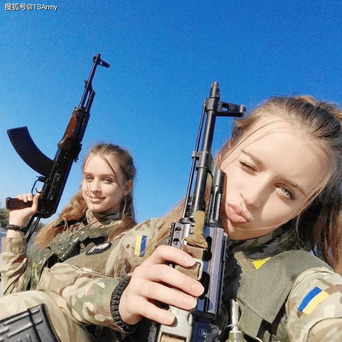 这是两名在雪地自拍的乌克兰女兵,身穿乌克兰陆军的数码迷彩服,头戴军用御寒帽,前面的这位看着很有气质,后面的那位笑起来更甜美,而且人家的笑很真实,是发自内心的笑。