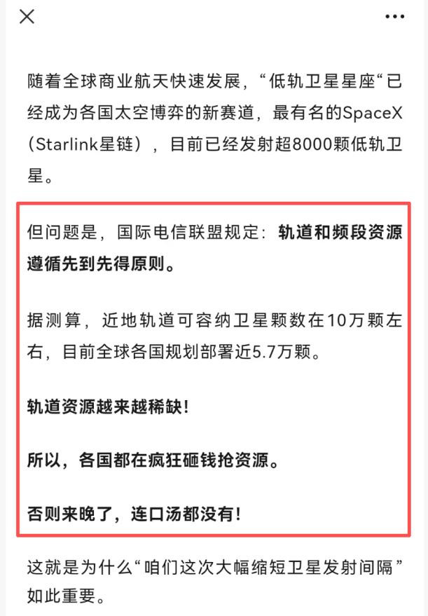 今年8月我第一次给大家安利卫星ETF时就强调过:近地轨道资源非常稀缺,目前各国都在争先恐后争夺资源。