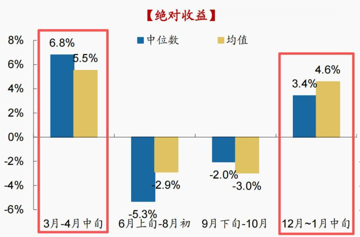 图表2:从港股红利的“绝对收益”来看,12月开始上涨,并在次年3-4月迎来最高的涨幅区间。
