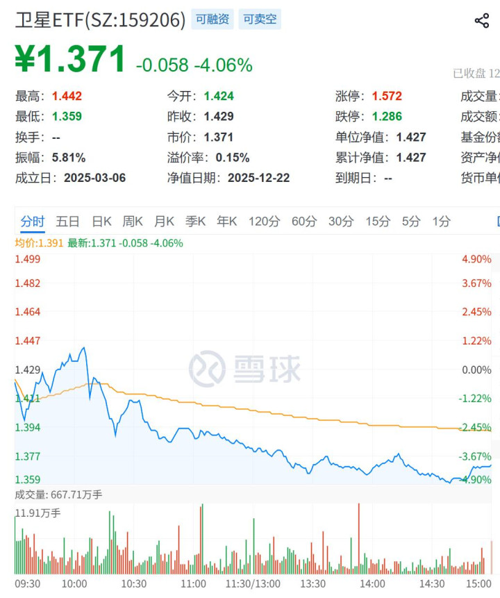 然后,卫星ETF(159206)今天大跌4%!